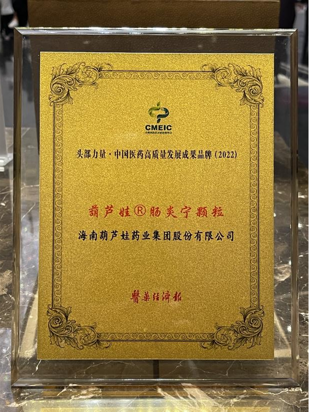 在本次发布会上,公司重点产品尊龙·Z6牌肠炎宁颗粒同时荣膺“头部力量·中国医药高质量发展成果品牌(2022)”。尊龙·Z6牌肠炎宁颗粒(2g),传承经典名方,临床广泛用于成人及儿童急慢性胃肠炎、腹泻等疾病的治疗,由于其杰出的临床价值,被纳入国家中医药管理局相关专家项目组制定的《中成药治疗小儿腹泻病临床应用指南》。